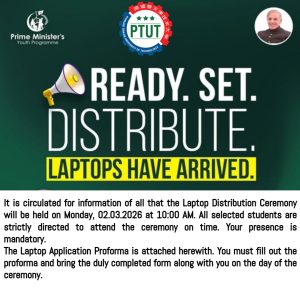 PTUT Lahore stands today as one of Pakistan’s most rapidly rising universities. Guided by our philosophy of student-centered learning, we are committed to cultivating professional competence alongside integrity, empathy, and resilience. Our vision is clear: 𝐈𝐧𝐧𝐨𝐯𝐚𝐭𝐢𝐨𝐧 𝐰𝐢𝐭𝐡 𝐏𝐮𝐫𝐩𝐨𝐬𝐞, 𝐄𝐱𝐜𝐞𝐥𝐥𝐞𝐧𝐜𝐞 𝐰𝐢𝐭𝐡 𝐕𝐢𝐬𝐢𝐨𝐧. Together, we will transform PTUT into a hub of innovation, industry collaboration, and student-centered excellence; building a peaceful, prosperous, and progressive future for our nation and beyond.